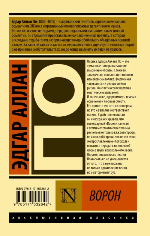 Если вы обнаружили ошибку в описании товара «Ворон» (авторы: По Эдгар Аллан), то выделите её мышкой и нажмите Ctrl+Enter. Спасибо, что помогаете нам стать лучше!