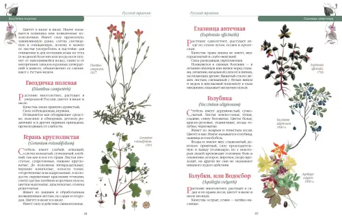 Книга содержит более 300 статей о лекарственных травах, цветах, кореньях и листьях целебных растений, которые и сегодня можно встретить в русских лесах, полях и на садовых участках.