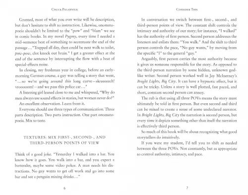 Книга Чака Паланика “Consider This. Moments in My Writing Life after Which Everything Was Different” подойдет не только тем, кто интересуется созданием текстов или литературным мастерством, но и тем читателям, кому по душе жанр автобиографии.