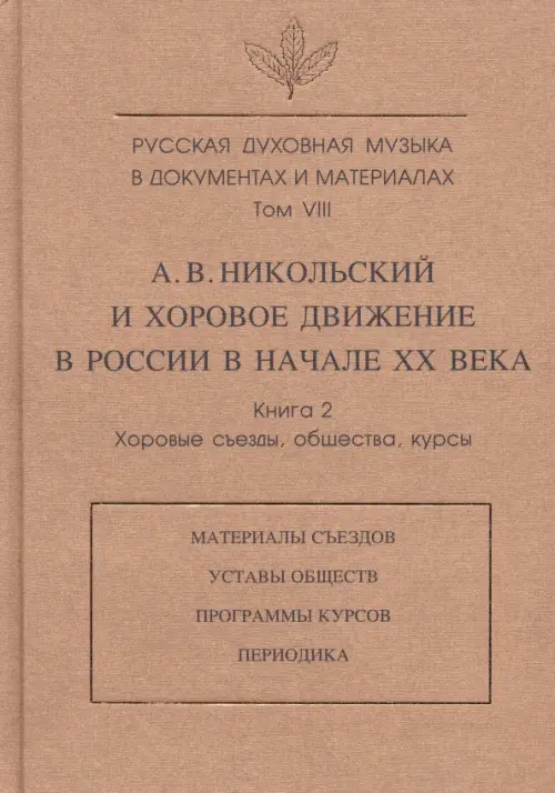 Русская духовная музыка в документах и материалах. Том VIII. А. Никольский и хоровое движение в России в начале XX века. Книга 2. Хоровые съезды, общества, курсы