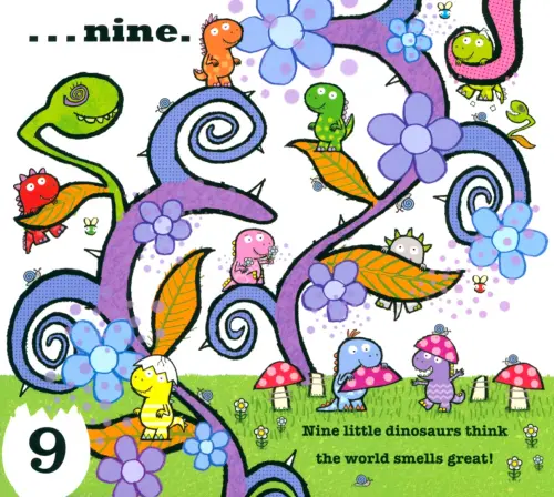 Научите ребёнка считать от 1 до 10, наблюдая, как динозавры исчезают, а затем появляются снова на страницах этой забавной истории-считалочки.