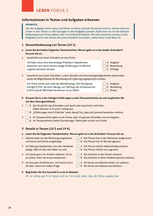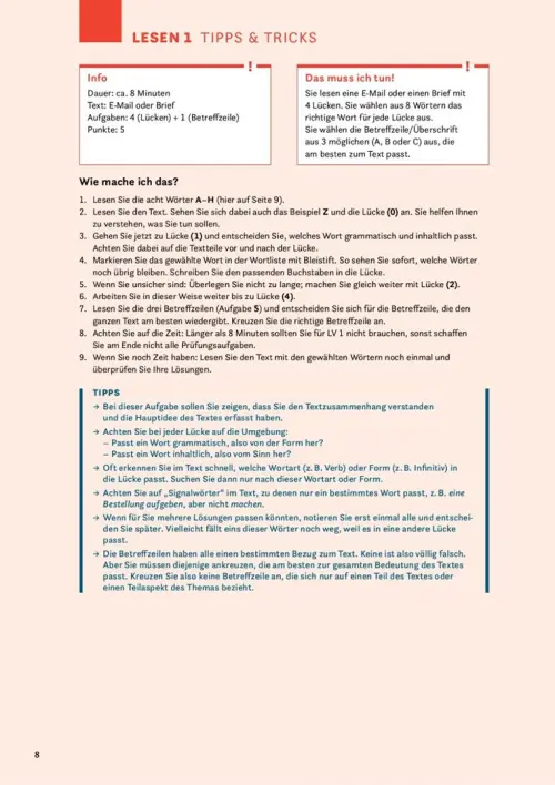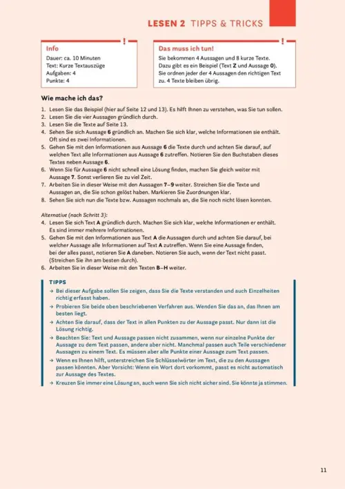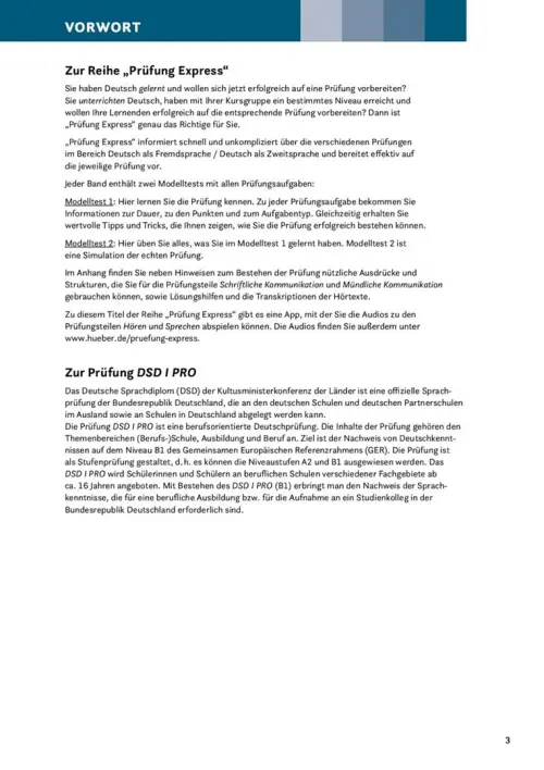 Das kompakte und übersichtliche Prüfungsvorbereitungsmaterial richtet sich an Lernende, die die Niveaustufe erreicht haben und sich schnell auf die Prüfung vorbereiten wollen, sowie an Lehrende, die sich einen schnellen Überblick über die Prüfung und deren Anforderungen verschaffen wollen bzw. auf ein ausführliches Prüfungstraining am Ende eines Sprachkurses verzichten können.