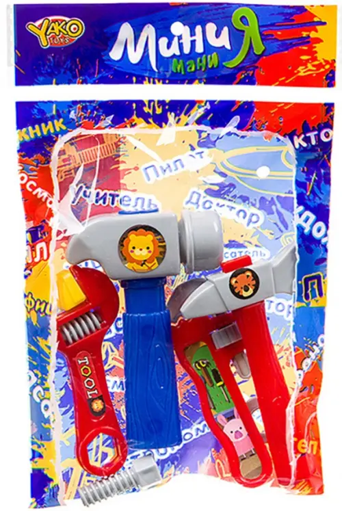 В составе набора: Молоток,топор, разводной ключ, слесарный ключ, болт, гайка. Все инструменты рабочие, не муляж.