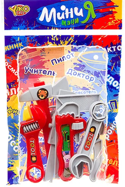 В составе набора: топор, разводной ключ, слесарный ключ, болт, гайка, накидной ключ, плоскогубцы, штангенциркуль, угольник. Все инструменты рабочие, не муляж.