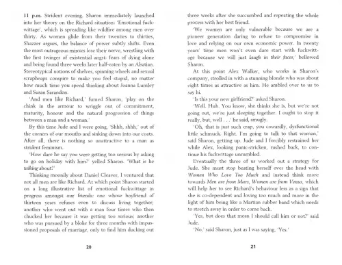 As Bridget documents her struggles through the social minefield of her thirties and tries to weigh up the eternal question (Daniel Cleaver or Mark Darcy?), she turns for support to four indispensable friends: Shazzer, Jude, Tom and a bottle of chardonnay.