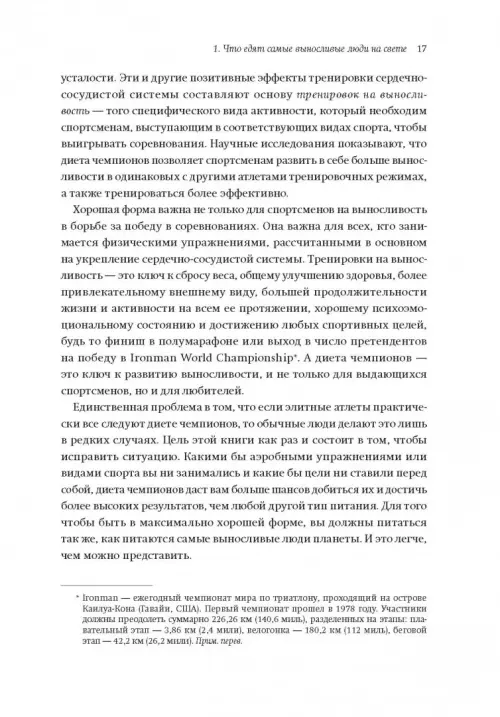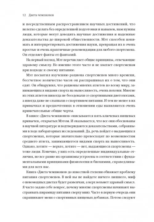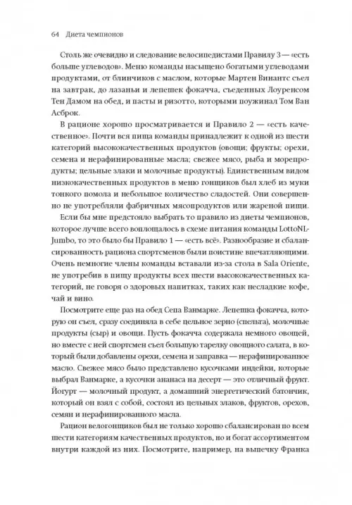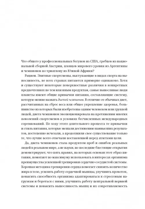 Основываясь на интервью с известными спортсменами и новейших научных исследованиях, автор предлагает план питания, которому может следовать каждый (да, эти 5 правил критически важны для спортсменов на выносливость, но подходят они для всех).