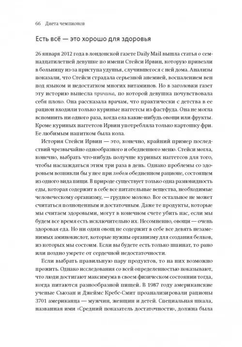 Многие спортсмены начинают выстраивание своей пирамиды питания с самого верха: начиная с пищевых добавок. Но основа питания - сбалансированный здоровый рацион. Эта книга поможет вам его настроить для себя.