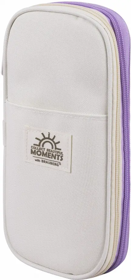 Пенал-трансформер Brauberg Moments размером 22х10 см с возможностью трансформировать объем с 3 см до 6,5 см при помощи двойной застежки-молнии снаружи.