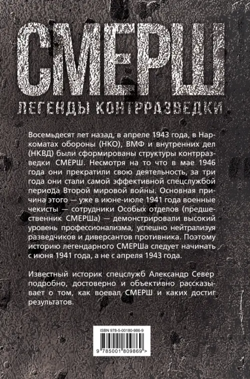 Если вы обнаружили ошибку в описании товара «Смерш. Битвы под грифом "секретно"» (авторы: Север Александр), то выделите её мышкой и нажмите Ctrl+Enter. Спасибо, что помогаете нам стать лучше!