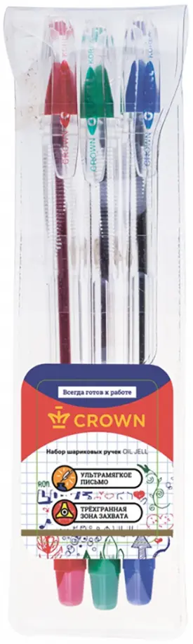 Количество ручек: 3 (синяя, красная и зеленая).