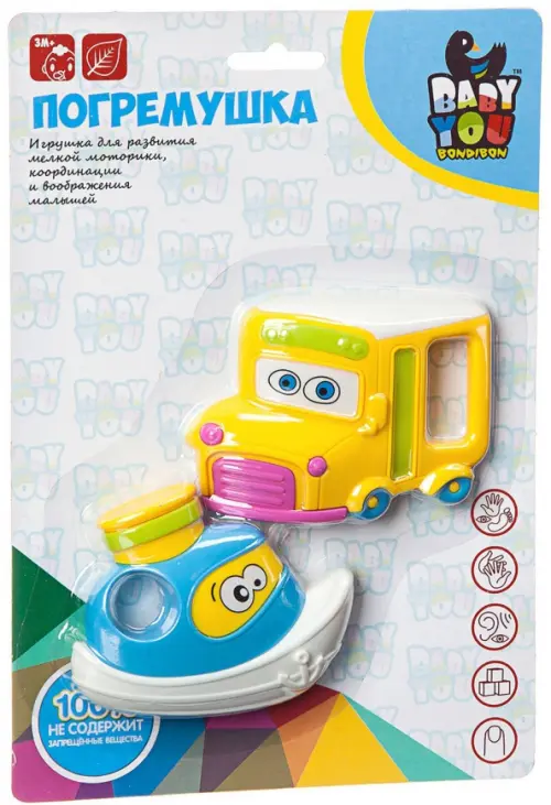 Яркие погремушки из безопасного пластика - лучшие первые игрушки для малыша. Погремушки имеют приятную расцветку и звук, гладкие контуры и формы. Яркие и качественные погремушки ТМ Baby You Bondibon формируют тактильные ощущения, восприятие звуков, цветов и форм. Посредством игры эти игрушки развивают мелкую моторику и воображение Вашего ребенка.
