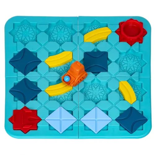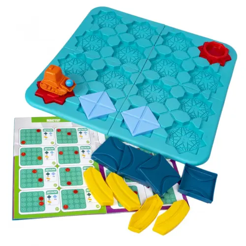 Расположите детали дорожек так, чтобы соединить стартовую и финишную точки. Положите шарик в экскаватор, запустите машинку по выложенной колее, проследите, чтобы шарик оказался в корзинке на финише. Ответьте на вопросы головоломки. В игре содержатся 118 заданий 4 уровней сложности. В комплект игры входят игровое поле из 4 частей, 18 игровых деталей, трактор с ковшом, 3 шарика, буклет с заданиями. Для 1 игрока. Возраст 3+