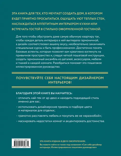 Если вы обнаружили ошибку в описании товара «Дизайн интерьера. Как создать стильный интерьер и воплотить мечты в реальность» (авторы: Ахремко Варвара Александровна), то выделите её мышкой и нажмите Ctrl+Enter. Спасибо, что помогаете нам стать лучше!