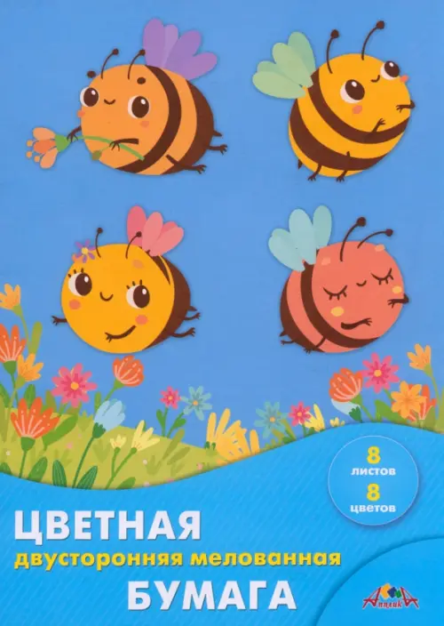 Бумага цветная, двусторонняя, мелованная Пчелки, 8 листов, 8 цветов