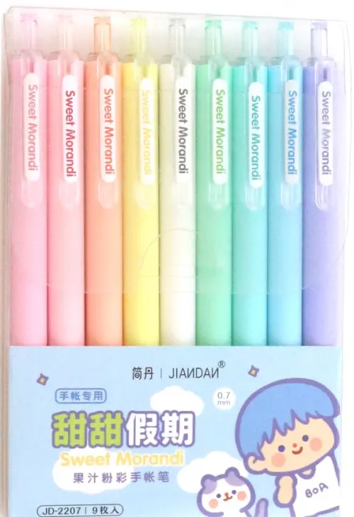 В наборе 9 ручек пастельных цветов.