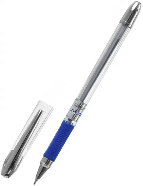 Ручка шариковая: на масляной основе "Piano Maxriter", прозрачный корпус, игольчатый наконечник, резиновый держатель, прозрачный колпачок с серебристым клипом, цвет чернил - синий, 0,5mm.