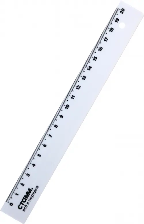 Линейка СТАММ предназначена для чертёжно-измерительных работ. Длина шкалы – 20 см, ширина линейки – 26 мм. Изделие имеет безопасные закруглённые края и чёткую контрастную миллиметровую шкалу. Линейка изготовлена из качественного полистирола, и имеет гладкую глянцевую поверхность. Цвет изделия - белый.