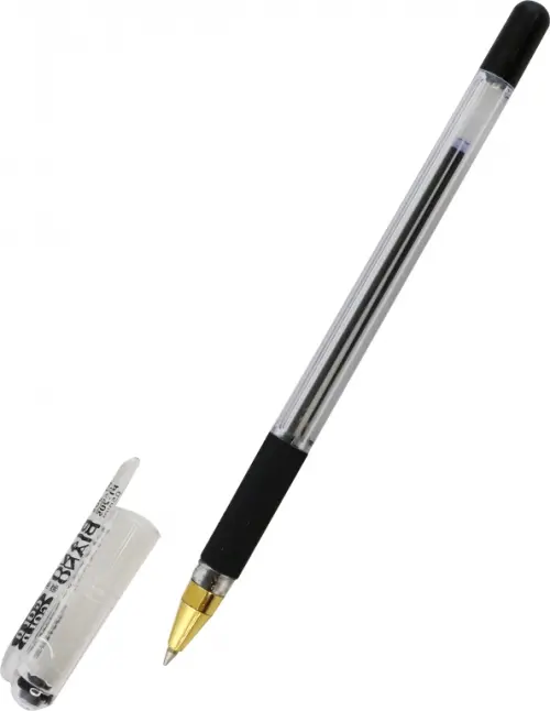 Ручка шариковая: на масляной основе, "Piano GOLD", прозрачный корпус, резиновый рефлённый держатель, наконечник золотистого цвета, игольчатый стержень, прозрачный колпачок, толщина пишущего наконечника 0,5 mm, цвет чернил-черная.