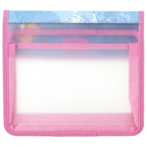 Выполнена из прозрачного материала с яркой печатью на уголке и клапане. По бокам имеет вставку из ткани, которая позволяет увеличить объем папки. Два отделения. Клапан на липучке для быстрого и удобного доступа к содержимому папки.