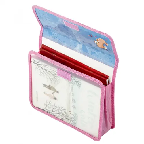 Папка для тетрадей Юнландия формата А5 выполнена из прозрачного пластика, имеет два отделения. Клапан изготовлен из ламинированного картона. По краям имеет тканевую окантовку. Цветная печать.