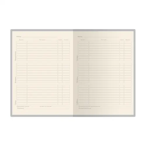 Для удобства в поиске нужной страницы предусмотрена закладка-ляссе. Угол обложки и блока скругленный, что предохраняет листы дневника от появления заломов.
