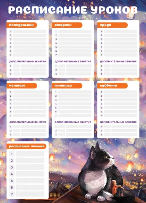 Если вы обнаружили ошибку в описании товара «Расписание уроков Котик и фонарики, А3», то выделите её мышкой и нажмите Ctrl+Enter. Спасибо, что помогаете нам стать лучше!