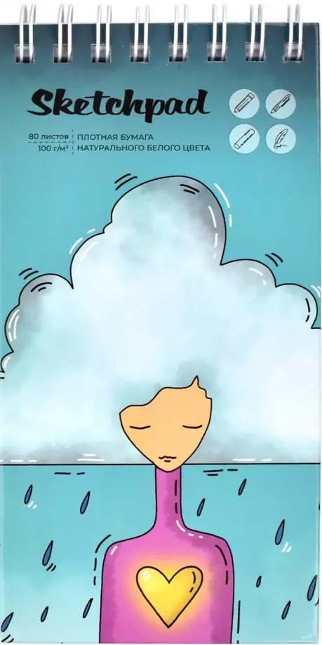Скетчпад. Размер 105х210 мм. Количество листов - 80 л. Тип обложки: твёрдый переплёт на гребне. Цвет внутреннего блока - белый офсет. Плотность бумаги 100 г/м?. Обложка: полноцветная печать. Ламинация обложки - глянцевая ламинация.