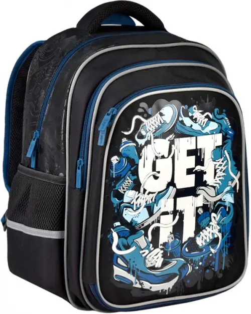 Рюкзак школьный (29х38.5х13.5 см, полиэстер, высокая печать, шелкография, 2 отделение (-я), молния, тип спинки: формоустойчивая спинка из сетчатой ткани и поролона, тип дна: с пластиковыми ножками, ПЭТ-пакет)