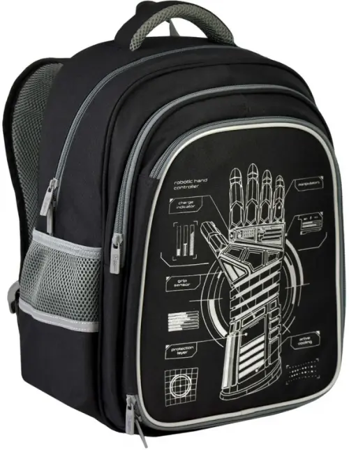 Рюкзак школьный (29х38.5х13.5 см, полиэстер, печать серебристой краской, 2 отделение (-я), молния, тип спинки: формоустойчивая спинка из сетчатой ткани и поролона, тип дна: с пластиковыми ножками, ПЭТ-пакет)