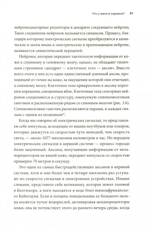 Профессор неврологии и известный популяризатор науки Дэвид Линден увлекательно и доступно - буквально "на пальцах" - объясняет, как работают сложные механизмы осязания, а заодно разбирает его многочисленные загадки. Почему перец кажется нам жгучим, а мята - холодной?