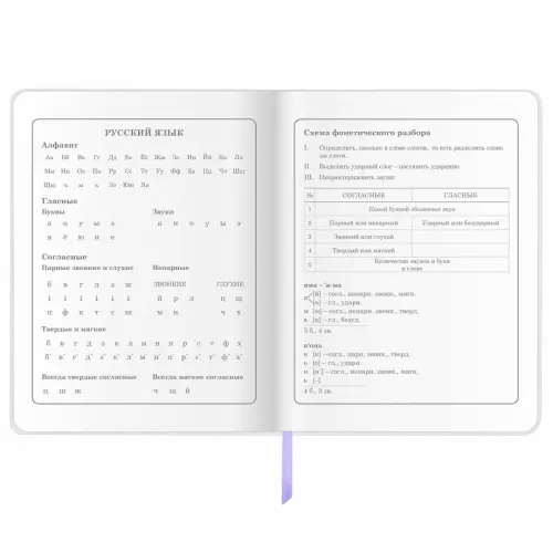 Предназначен для учащихся начальных классов. Интегральная обложка из экокожи надежно защищает бумагу и долго сохраняет привлекательный внешний вид, а тиснение фольгой придает изделию оригинальность. Внутренний блок содержит 48 листов и состоит из офсетной белой бумаги плотностью 70 г/м2. В справочном материале собраны основные подсказки для учащихся. Для удобства пользования дневник снабжен закладкой-ляссе.