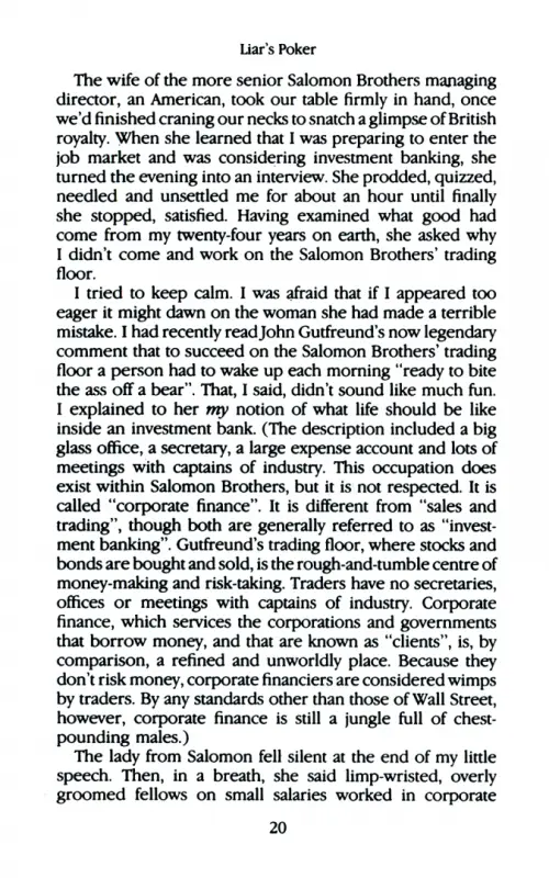 Простой стажёр, скромный гик, затем успешнейший мужик: примерно так выглядела профессиональная траектория Майкла Льюиса в фирме Salomon Brothers во второй половине восьмидесятых годов, когда эта компания была серьёзным претендентом на роль самого влиятельного и успешного инвестиционного банка в мире.