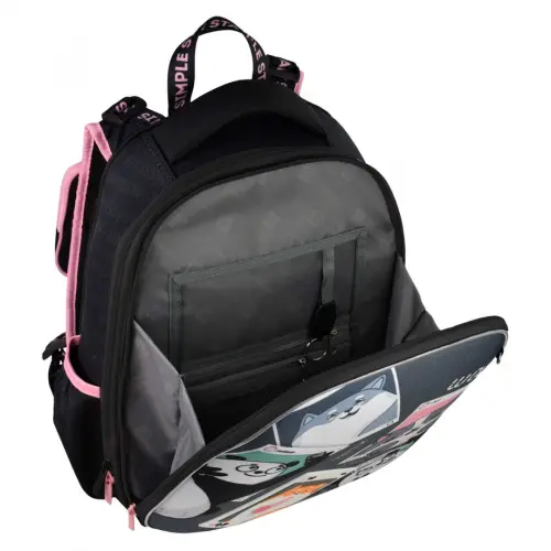 Ранец школьный (27х37х13 см, полиэстер, ЭВА панель, резиновая нашивка, сублимационная печать, шелкография, 2 отделения, молния, тип спинки: формоустойчивая жёсткая спинка из сетчатой ткани и поролона c дополнительной функцией регулировки лямочной конструкции под рост ребёнка, тип дна: с пластиковыми ножками, ПЭТ-пакет с ручкой)