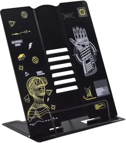 Подставка для книг и учебников (21х26х16.5 см, окрашенный чёрный металл, количество углов наклона: шесть, прижим для фиксации страниц: есть, УФ-печать, ПЭТ-пакет).