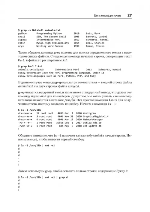 Перейдите на новый уровень работы в Linux! Если вы системный администратор, разработчик программного обеспечения, SRE-инженер или пользователь Linux, книга поможет вам работать быстрее, элегантнее и эффективнее. Вы научитесь создавать и запускать сложные команды, которые решают реальные бизнес-задачи, обрабатывать и извлекать информацию, а также автоматизировать ручную работу.