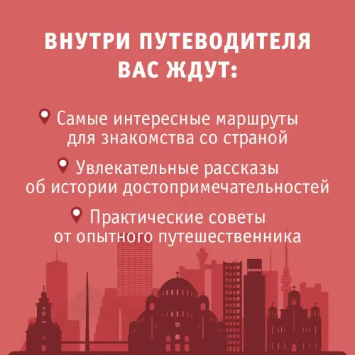 Путеводитель рассчитан на самостоятельных путешественников, готовых познакомиться с уникальным регионом, богатым историей, культурой, природными объектами. В книге вы найдете описания маршрутов самых интересных прогулок по Белграду, Нови-Саду, Нишу и небольшим городкам Сербии. Также автор дает советы для путешествий по природным достопримечательностям – национальным паркам и заповедникам, а также рассказывает о популярных горнолыжных курортах страны. Карта, размещенная в начале книги, поможет в ориентировании. С нашим путеводителем за меньшее количество времени вы увидите больше.