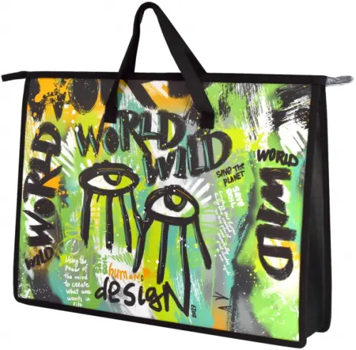 Папка для чертежей и рисунков пластиковая (полипропилен, формат А3, 45x33х9 см, 1 отделение, молния, внутренний ПВХ карман, дно с расширением, текстильные ручки, УФ-печать)