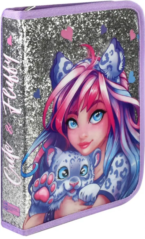 Пенал-органайзер XXL для канцелярских принадлежностей школьный (без наполнения, 28*20*4,5 см, глиттерная бумага, искусственная кожа, ПВХ, молния, полноцветная печать по ПВХ, ПЭТ-пакет).