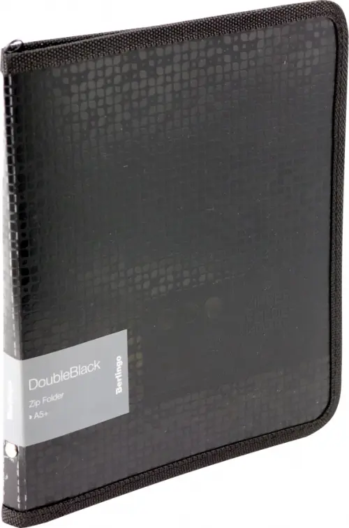 Папка пластиковая на молнии Berlingo "DoubleBlack" формата А5+, черного цвета, с рисунком. Черный цвет внутренней поверхности. Надежная молния с мягким ходом. Быстрый доступ к содержимому. Изготовлена из высококачественного полипропилена с матовой текстурой поверхности "песок", на которой не видно отпечатков пальцев и мелких царапин. Предназначена для хранения и транспортировки документов. Толщина обложки 600мкм. Упакована в индивидуальный прозрачный пакет по форме.