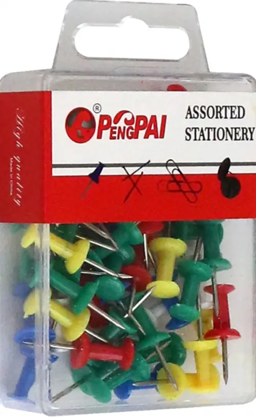 Набор кнопок: гвоздики, с цветными головками, в пластиковой коробочке. 50шт.