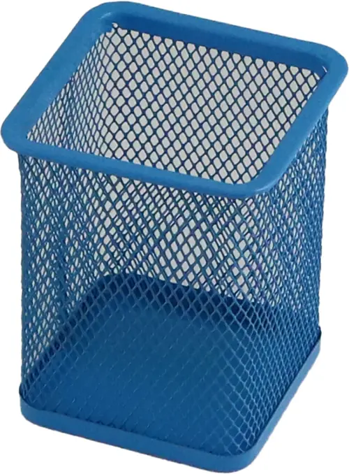 Подставка для канцелярских принадлежностей: стакан с квадратной формой основания, материал-стальная сетка, 4 цвета, размер-10*7 см.