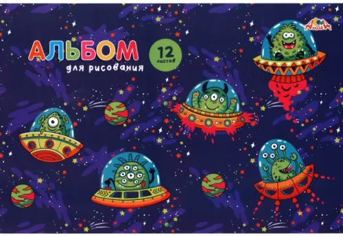 Альбом для рисования, 12 листов, формат А4, плотность 100 гр/м2. Внутренний блок - высококачественная офсетная бумага. Обложка - мелованный картон, полноцветная печать с защитным ВД-лаком. Крепление - скоба.