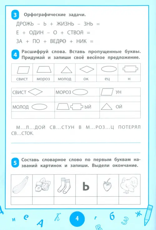 Книга содержит нестандартные задания (кроссворды, ребусы, лабиринты, орфографические задачи, тесты и др.), которые научат школьника правильно писать словарные слова. Задания составлены с использованием приёмов мнемотехники и способов, облегчающих запоминание нужной информации и увеличивающих объём памяти. Игровой формат заданий поможет ребёнку легко и быстро запомнить правописание более 120 словарных слов, предусмотренных программой для начальных классов общеобразовательной школы.