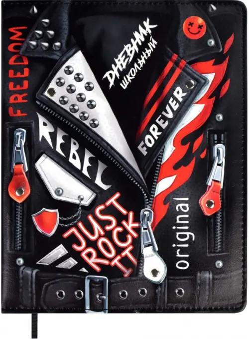 Дневник школьный, Косуха, формат А5+, 48 л., твёрдый переплёт с поролоном. Обложка: искусственная кожа "Наппа", металлические клёпки, полноцветная печать, обстрочка по периметру, углы обложки закруглённые, углы блока закруглённые, одно ляссе, красочность форзаца: печать в одну краску, красочность блока: печать в одну краску. Блок: бумага - белый офсет, 80 г/м?, универсальная шпаргалка. Индивидуальная упаковка: ПЭТ-пакет.