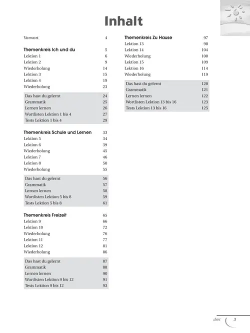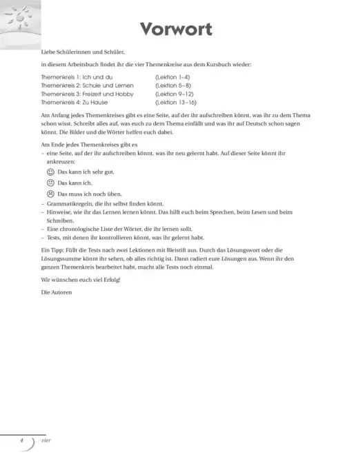 Eine chronologische Liste des aktiven Wortschatzes ergänzt das Arbeitsbuch.