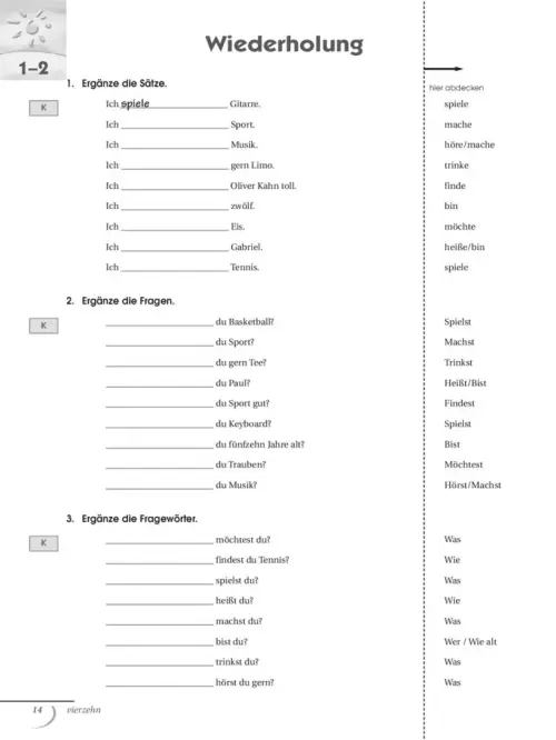 Eine selbstentdeckende Grammatik und Tests mit der Möglichkeit zur Selbstkontrolle geben dem Lerner Gelegenheit, die eigenen Fähigkeiten einzuschätzen.