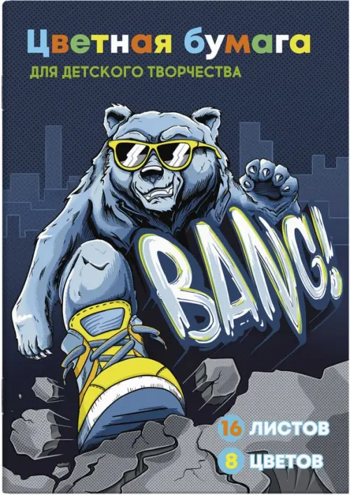 Бумага цветная двусторонняя Крутой гризли, 16 листов, 8 цветов