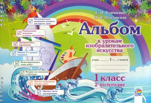 В альбоме представлен материал, разработанный в соответствии с темами предмета "Изобразительное искусство", изучаемыми в 1-м классе во 2 полугодии. Отличительной особенностью пособия являются последовательное размещение материала и структура каждой темы: дифференцированные задания двух уровней сложности, иллюстрированные этапы работ, тренировочные упражнения, подсказки и рекомендации, плотные листы-основы, иллюстративный материал для самооценки и рефлексии. Альбом дополнен цветными изображениями примерных итоговых работ.