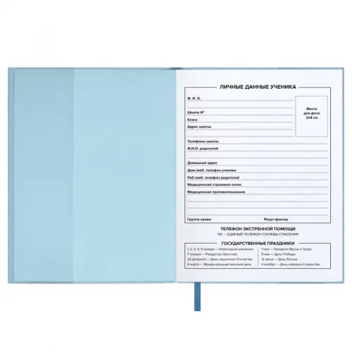 Дневник школьный, формат А5+, 48 л., мягкий переплёт. Обложка: ПВХ, полноцветная печать, тиснение фольгой, карман(-ы) на лицевой части обложки, съёмная обложка, углы обложки прямые, углы блока прямые, одно ляссе, красочность форзаца: печать пантоном, красочность блока: печать в одну краску. Блок: бумага - белый офсет, 80 г/м?, универсальная шпаргалка. Индивидуальная упаковка: ПЭТ-пакет.
