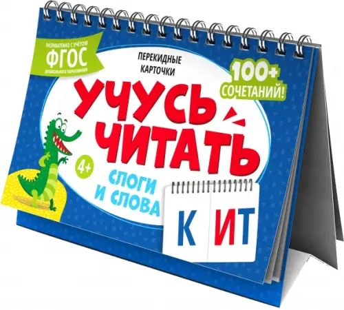 Карточки перекидные обучающие, сброшюрованные, 210х150 мм, полноцветная печать, обл - мелованная бумага 250 г/м?, глянцевая ламинация, гребень, Внутренний блок разделен на две части, что позволяет собирать различные сочетания слогов и слов.